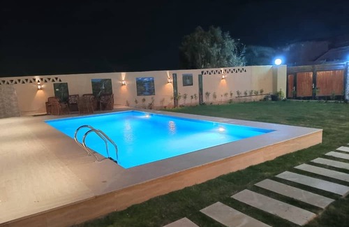 Jacaranda Villa in Tunis Village, Fayoum, combines both traditional and modern styles, with stunning views of lakes and farmland. It is considered a haven for peace and relaxation, featuring a private pool, garden, and terrace to enjoy the sunset.
