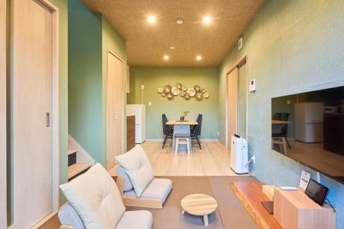 貸し切り宿 世紡 YOTSUMUGI sakazuki and iyasaka features a hot spring bath and an open-air bath, as well as air-conditioned accommodations in Yufu, 29 miles from Crasus Dome Oita. The property is around 16 miles from Beppu Station, 23 miles from Oita Station, and a 9-minute walk from Yufushi Yufuin Chuo Jido Park. The villa has private entrance. The units come with tatami floors and feature a fully equipped kitchen with a microwave, a dining area, a flat-screen TV with streaming services, and a private bathroom with walk-in shower and slippers. Free Wifi is accessible to all guests, while certain rooms are equipped with a balcony. At the villa complex, every unit is equipped with bed linen and towels. Popular points of interest near the villa include Kinrinko Lake, Yufuin Station, and Norman Rockwell Yufuin Museum. Oita Airport is 35 miles from the property.