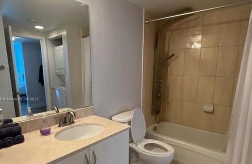 Furnished 1 bedroom, 1 bathroom. Miami condo with views of Biscayne Bay, Ocean, and Miami skyline. This unit has an open kitchen with stainless steel appliances, granite counters, and tile floors. There is in-unit washer and dryer for your convenience. Tempurpedic memory foam adjustable bed ensures a good night's sleep while the home office with a standing desk and filing cabinet lets you get work done in peace. Cook up your favorite meals in the fully stocked kitchen and enjoy them on the spacious balcony with stunning views of the city. When you're not busy exploring all that Miami has to offer, take advantage of the building's amenities which include a heated pool, hot tub, fitness center, and 24-hour concierge. Perfect place for business or pleasure. Houzlet publishes listings on Vrbo; which in turn, allows tenants to instantly rent seasonal rentals. Houzlet’s properties are managed by licensed real estate agents. Although the property is an instant rental, it’s possible there can be another pending application. If the home is not available, we can offer you another suitable option or you can cancel for free.