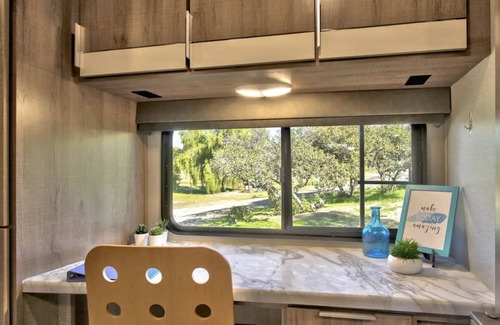 Your private RV, located away from the main house, guarantees privacy. We, your on-site hosts, will check you in and are here for any assistance you may need. The pool, BBQ, and firepit areas are shared spaces for a communal experience with fellow guests. Enjoy a private and welcoming retreat during your stay!