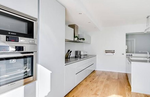 With the iconic Arc de Triomphe and Champs-Elysées practically on your doorstep, this Parisian pad is the perfect base for a getaway in the City of Lights. Here, classic elegance meets modern living – think white marble fireplace, traditional French windows and a sumptuous sofa built for sprawling. Cooking is anything but a chore in the glossy kitchen, which has all the crockery you'll need to rustle up light breakfasts and gourmet dinners. Both bedrooms are as stylish as they are comfortable, while the two bathrooms boast remote controlled light therapy, a jacuzzi tub and a lavish rainfall shower. But the real star is the sweet little balcony, which overlooks Haussmannian buildings and the city street. It's the perfect spot to sip your morning coffee or an evening glass of wine in the summer sun, watching as Paris comes to life below you.