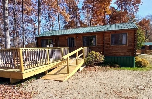 Come enjoy a real log cabin experience in the quiet hills of Hocking Hills/Lake Logan. Inside the beautifully wood furnished cabin you will enjoy a living area with a futon and TV, a full kitchen, and a full bathroom. They feature a private room with a queen bed, private room with a full bed and a futon in the living area for additional guests. Cabin is equipped with one TV & a DVD player which are centrally located in the main living area. Air-conditioning and heat keep the cabin comfortable in all seasons. Your outdoor living space includes a concrete patio or deck, including seating. Every cabin has its own charcoal grill, picnic table, and fire pit area. A parking pad is provided in front of the cabin. All campground amenities are available with registration. Young children are free, so please do not include children 2 and under in your reservation count.