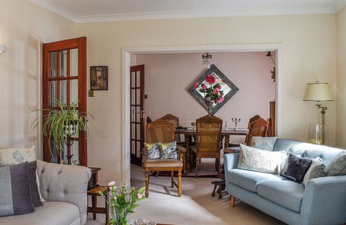Entering the property, you are welcomed into spacious hallway where all the principal rooms can be found. The living room is large with a Smart TV and comfy sofas. The dining room has direct access from the hall and living where there is enough space for all guests to enjoy their evening dinners. The two bedrooms are both doubles with the family bathroom offering a walk-in shower and heated towel rail. There is a separate toilet as well. The kitchen is well equipped with fridge/freezer, washing machine, electric oven and hob. The conservatory directly off the kitchen is somewhere you can relax after a day exploring. Both front and rear gardens are well kept and mainly laid to lawn to enjoy the summer sun.