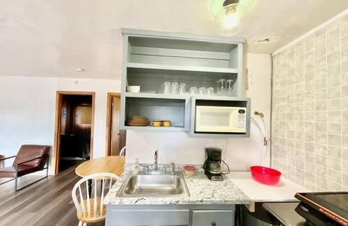 This peaceful cabin is the perfect size, this 2 bedroom, 2 bath cabin is located within Stone House Lodge & RV overlooking El Vado and the Chama River. Kitchenette is equipped with an electric cooktop griddle, refrigerator/freezer, microwave, coffeemaker, toaster, dishes, cookware, silverware and utensils. Bed and bath include linens, towels, shampoo, soap and bath tissue. Each cabin has a private covered porch with outdoor seating and dining.