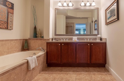 Both bedrooms feature flat screen TVs with DVD players, iHome clock radios with iPod docking stations and adjoining bathrooms. The master suite has a king bed and separate shower and garden tub. The guest bedroom has a queen size bed and combined shower/tub. Need to do a load of laundry? This condo has a washer/dryer, just like home!