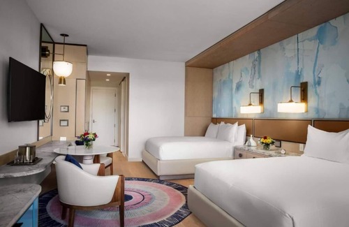 Each 505sf Lagoon View Guestroom with Balcony - 2 Queens features: