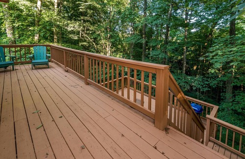 Step out the back door on to the multi-leveled deck overlooking the Brown County hills. The deck is equipped with a large patio table with umbrella, chairs, BBQ grill, and a large 6 person covered hot tub. It's a wonderful place for relaxing after a full day of exploring Brown County Indiana.