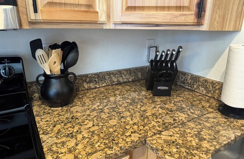 * Granite counter topped kitchen is fully stocked with most everything you'll need for cooking.