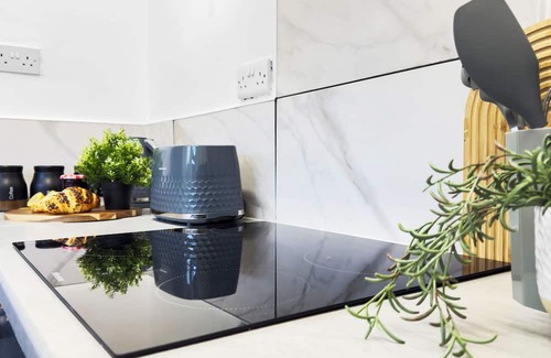Cook up your favourite meals in the modern kitchen, featuring an electric induction hob, oven, microwave, kettle, fridge-freezer and washer dryer — perfect for long stays.