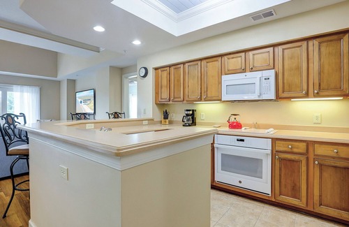 This beautiful Hilton Head villa offers great harbor and pool views. The entry features tile flooring and an eat-in bar for three.