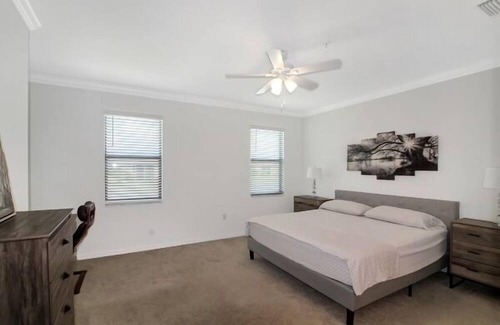 For added privacy and a peaceful sleep, all of the bedrooms are situated on the second floor. Gran Paradiso is a full-lifestyle community, complete with a clubhouse that boasts a billiards room, sauna, community pool, and spa with poolside cabanas, tennis courts, card rooms, a library, and so much more. You're also just a short drive away from the beautiful beaches and downtown Venice attractions. All utilities are included, ensuring a hassle-free and luxurious stay.