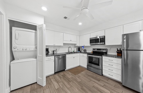 Enter this property and come into the dining area which is located adjacent to the kitchen. There is seating for seven at the large "farm style" table. Prepare meals in the large fully stocked kitchen featuring updated granite counters, and new stainless steel appliances. The stacked washer/ dryer is in the laundry closet next to the kitchen. Gather in the living area with ample comfortable furniture for everyone to watch shows or movies on the large Smart TV with streaming services. Step onto the large screened porch and take in the natural beauty of Seabrook Island. You can dine around the table for 6 or enjoy conversation while lounging in the comfortable furniture.
