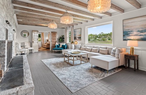 This is a secluded oasis, where you can relax and watch the sunrise over the marsh, have a glass of wine by the fire pit or end your day looking at the infinite marsh beauty from bed in the master.