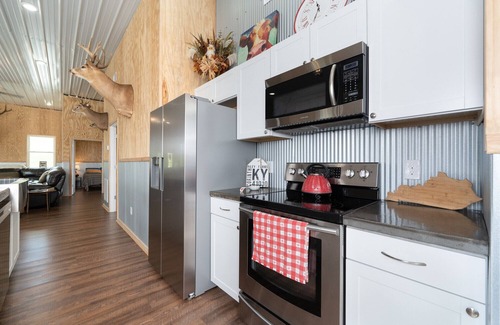 We welcome you to take walks or a jog (if you happen to be a runner) down our gravel lane, where you can take in views of cattle and calves grazing in the fields, and likely a picture prefect sun rise or sunset. The Lodge has a fully stocked kitchen to enjoy on site cooked meals. The back/side yard easily allows you to enjoy a game of wiffle ball, soccer or other yard games. You may want to spend your evenings around the firepit roasting a hotdog or marshmallows or just relaxing in your lawn chair outdoors in the countryside. Should it be winter, we encourage you travel to KY with 4-wheel drive due to possible snow and icy conditions at times.