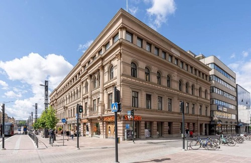 This Three-Bedroom apartment is located in the historical "Ruuskanen" building in the very heart of downtown Tampere next to the main street of the city. The building was finished in early 1900's and it is truly a part of Tampere's history and one of the most famous residential buildings in the city.