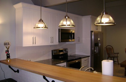 This apartment has wonderful amenities, including all new appliances, a 70 inch TV in the "Great Room", a mixture of new and antique furnishings alike, with a large eat in contemporary kitchen, which opens into the "Great Room."