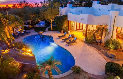 3Million$ LuxWaterSlide Getaway*PickleBall*Golf* has 5 Bedrooms , 4 Bathrooms, and max occupancy of 14 people. The minimum rental for this property is 1 nights, but this can change depending on the season you plan on staying. Previous guests have given good rated it, and VRBO labeled it a top-rated Villa because of the excellent services rendered by the owner or manager of this Villa, and has consistently provided great experiences for their guests. Most families or guests that use it recommend it to their friends and some of them are repeat guests. Villa has a friendly neighborhood, and the Central Scottsdale has interesting places to visit. If you want to learn more about the Villa in Central Scottsdale, such as places to visit and things to do nearby, you can check below to learn more.