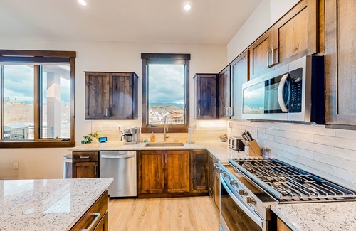 This mountain-view home away from home offers a modern and beautifully decorated interior where you can create everlasting memories with family and friends. Your private balcony offers the most incredible mountain and city views along with a bubbly hot tub that will wash all of your worries away the moment you sink into it. When it comes to indoor relaxation, curl up in front of the warmth of the gas fireplace and watch a favorite show on the cable-enabled TV. When mealtime comes around, whip up tasty homemade meals and treats for the group in the well-appointed open kitchen, complete with all stainless steel appliances. A Keurig coffee maker will surely please all coffee enthusiasts. Additional perks include an on-site washer/dryer.