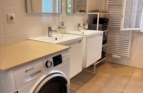 Nestled in Berlin, this vacation home brings it all within your reach. Fans of nature and the outdoors will love being 10 minutes by car from Tempelhof Park and 28 minutes from Strandbad Wannsee. Botanical Garden is an easy 13-minute walk away or make quick work of the 7-minute drive to Kurfürstendamm. Check out other neighborhoods and see more of Berlin by hopping on a metro at either Breitenbachplatz U-Bahn, a short 4-minute walk away, or Podbielskiallee U-Bahn, 10 minutes away.