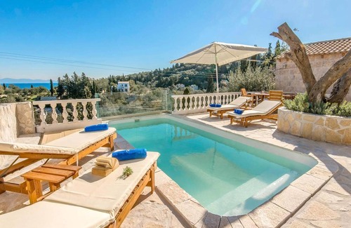 5-min walk to the beach, great views, BBQ is located in Longos. 5-min walk to the beach, great views, BBQ provides accommodation, featuring Air Conditioner, Pool, TV, among other amenities. This Villa features Air Conditioner, Pool, TV, to make your stay a comfortable one.