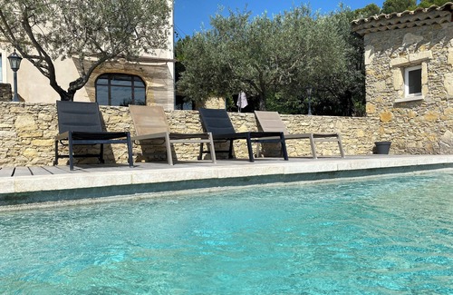 Everything is new: We offer you accommodation with very good facilities, in a wonderful Provencal farmhouse at the foot of the pine woods, it is a quiet and peaceful place facing south with an unobstructed view of Vaison and its castle. You will also enjoy the infinity pool (13mx6m) with its garden planted with olive trees, fig trees, and a big terrace to relax while having a drink and listening the cicadas.