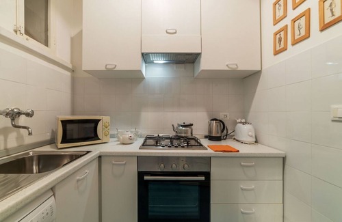 The small kitchen is fully equipped and you can count on it to help you prepare quick meals during your stay in Rome: in addition to pots, pans, cutlery and other utensils, there is an oven, a microwave, an electric kettle, a toaster, a fridge with freezer compartment and a small dishwasher.