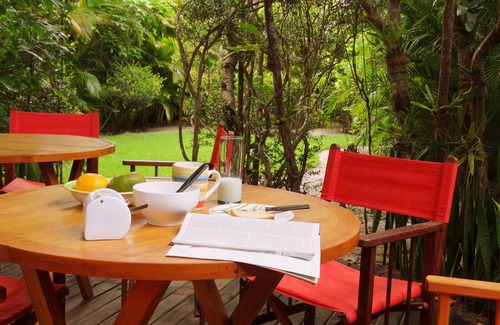 The house has the astral you need to enjoy your holiday! With a relaxed and colorful decor it is perfect for relaxing. Its lush garden attracts various birds that will make your morning even more special! It has 3 suites that accommodate up to 6 people. 2 additional guests will be accommodated on the mezzanine (no air conditioning, access to the social bathroom down the stairs).
