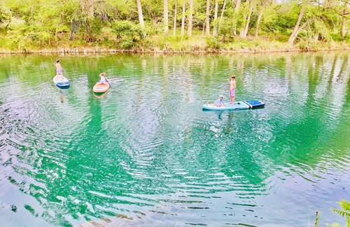 Towering shade trees provides a shady area to barbecue, enjoy a campfire, or just relax and connect with the outdoors. This cabin is located on the best stretch of the Frio River for tubing. The deep “lake area” is 14- 18 feet deep year around and is the end of the float trip. (no driving after floating!) Take a stroll to the river to watch the fireflies come out in the evenings or star gaze from your porch! (We are night sky friendly!)