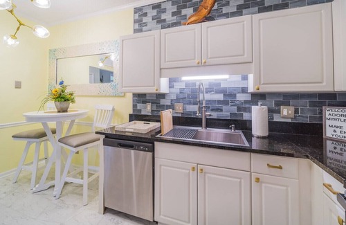 This unique place has a style all its own. Located in Savannah Shores. Prime location with walking distance to the beach and Restaurant Row and within minutes from Tanger Outlet & Barefoot Landing. 10 minutes from the Board Walk in Myrtle Beach. Plenty of attractions and dining experiences for all ages. Adore is a 940 square foot condo located on the 2nd floor. There is no elevator. Must be 25 years old to book. WE CHARGE A NON REFUNDABLE PET FEE THAT WILL NEED TO BE PAID DIRECTLY TO US VIA VENMO OR CASH APP) *****Pets are NOT allowed on the furniture, if there is evidence of pets on furniture, you will be charged extra cleaning fees*** If you have an animal that is vocal and consistently barks, we ask that you do not book your reservation with us. Our neighbors will file a complaint which may lead to a nuisance fine. No motorcycles or trailers allowed.