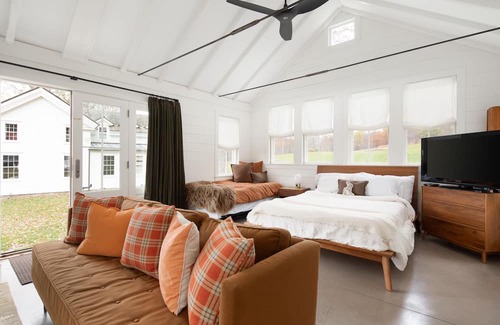Discover your inner writer, create new memories, or simply unwind in the natural beauty of Ancram. This 1850s farmhouse was carefully renovated with modern details for your comfort while maintaining the homes historical rustic country charm. Enjoy the mornings overlooking the private pond and rolling hills. Adventure into the afternoons exploring quaint towns nearby with local cafes, restaurants, and shops. Relax into the evenings stargazing next to the fire pit.