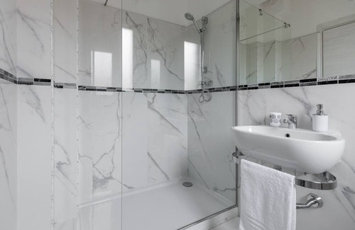 The apartment consists of two double bedrooms with comfortable beds and a study area. Each of the two rooms has an en suite bathroom, as well as an HD Smart TV with access to major platforms such as Netflix, YouTube, Prime, and DAZN. The various aesthetic and functional elements of the rooms give them a modern flavor, based on the harmony between functionality and aesthetics. This harmony continues in the evident care applied to the design of the bathrooms available to our guests: two of these are located in the two double bedrooms, while a third bathroom is attached to the kitchen, serving as a guest toilet. The kitchen is well-equipped with appliances and spacious. In this area, in addition to the third bathroom, there is also a third television with access to major platforms such as Netflix, YouTube, Amazon Prime, and DAZN. Furthermore, the kitchen area benefits from excellent ventilation due to the presence of the terrace, ideal for hanging clothes, especially during longer stays. In fact, guests will also find a washing machine at their complete disposal in this area. The apartment is located on the third floor, and tranquility and sound isolation are ensured by the presence of double-glazed windows.