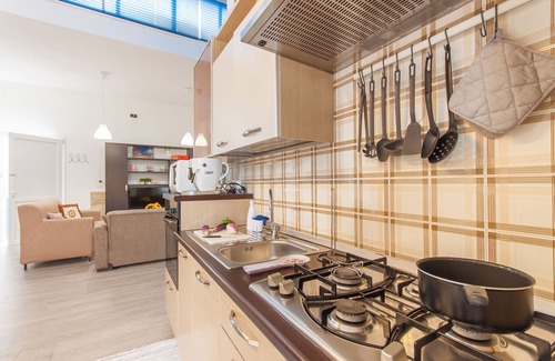 Relax by the shared outdoor pool on the sun loungers or enjoy al fresco meals on the sunny terrace, this apartment is perfect for unwinding in warm Italian days.
