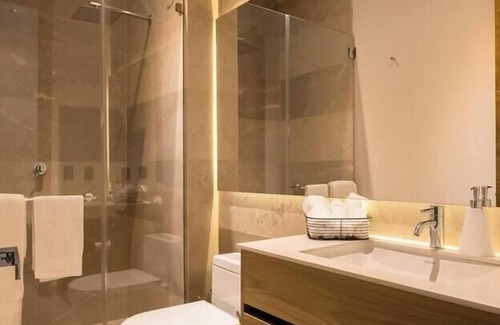 This apartment is very well located, It is close to multiple shopping malls, movie theaters, business centers, and entertainment venues. The apartment has 2 large bedrooms, equipped kitchen, 2 parking spaces, smart tv and work area. The building has 2 elevators, restaurants and cafes in the lobby. Important note: This venue is not for private events, parties are not allowed, and you must follow building guidelines at all times.
