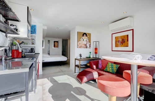 The 36 m² property consists of a living room, a fully-equipped kitchen, 1 bedroom and 1 bathroom and can therefore accommodate 2 people. Additional amenities include high-speed Wi-Fi suitable for video calls, air conditioning as well as a TV. A baby cot is also available upon request and for an additional fee.