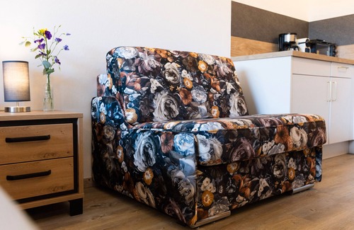 A comfortable double bed provides a restful night's sleep and the high-quality, fold-out sofa can be used as an additional sleeping option.