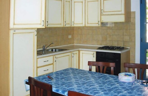 Layout: Ground floor: (Living room(double sofa bed, TV, seating area), Kitchenette(dining table, hob, oven, fridge-freezer), bedroom(double bed), bedroom(single bed, single bed), bathroom(shower, toilet, bidet)) veranda, Reception, washing machine, heating(through air conditioning), air conditioning, terrace, garden, garden furniture, sun loungers, parking, parasol, swimming pool(shared with other guests, opened from Jun upto and including Sep), high chair, baby crib(paid)