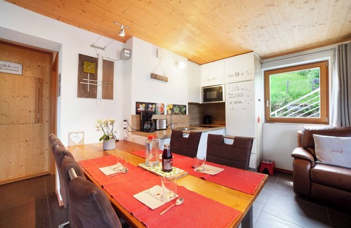 The holiday apartment boasts a private outdoor area with an open terrace and a balcony. Enjoy relaxing mountain views while preparing a healthy lunch for your family!