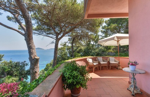 Apartment in a villa on the ground floor, located in an elegant condominium directly by the sea, about 3 km from Procchio.