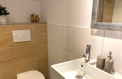 The recently modernized bathroom is equipped with a large shower (barrier-free) and toilet.