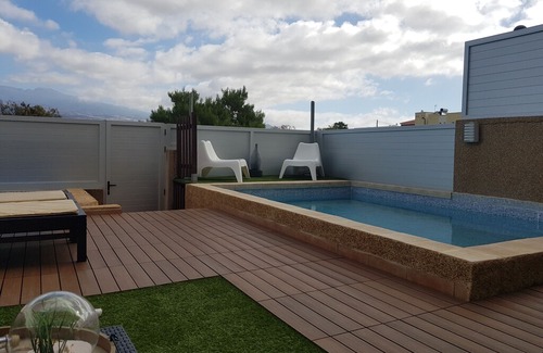 Special apartment with pool and Jacuzzi with warm water, and also for the exclusive use of guests. Perfect for sunbathing and resting. It is located in a very quiet place with views of Mount Teide. Very close to: the beach, cafes, supermarkets and restaurants. Away from the hustle and bustle of hotel areas, ideal for relaxation. You can enjoy a barbecue, or watch the stars on the large terrace.