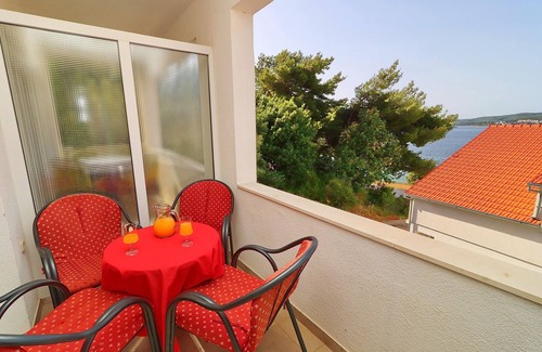 Overlooking the Adriatic sea this one bedroom apartment with furnished balcony is perfectly fit for up to four people. It features free WiFi, air conditioning and SAT TV. The kitchen comes with dining area while the living room includes a sofa and sitting area. The apartment has a private bathroom with shower.