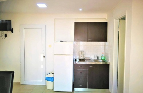 This studio apartment with sea view can accommodate up to four people. It features SAT LCD TV as well as air-conditioning. The kitchenette is equipped with refrigerator, water kettle, freezer, stove, kitchen utensils and dining area. The private bathroom comes with shower and toilet. Bed linen as well towels are at your disposal.