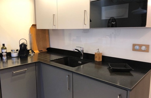 The apartment consists of a bathroom with shower and WC, a fully equipped American kitchen (dishwasher, oven, microwave, Nespresso coffee machine, fondue and raclette ...).