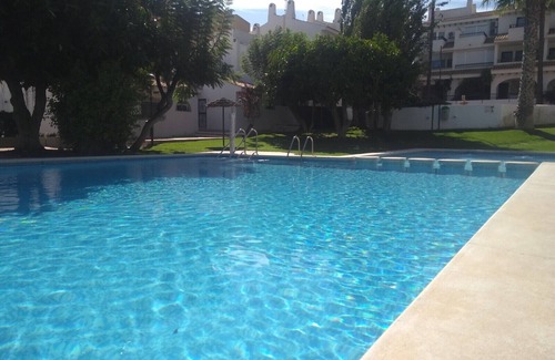25 minutes drive north of Alicante airport is the fishing village of El Campello. Our apartment is on the very outskirts of this village -just past an ancient watchtower and an archaeological dig - in an established residential area with the sea in front and villas and mountains behind. It is a secure, gated community with a large shared pool and lovely gardens full of trees and flowers looked after by our gardener. The architecture is Moorish - white walls, red tiled roofs, and the apartments are designed so that we all have beautiful views onto the gardens, pool and to the sea, but do not overlook each other. The buildings are only 3 stories high and are long established. You can stroll in minutes to the centre of Campello or to the tram stop - you don't need a car, but we are away from the noise and bustle - a perfect location. But if you do come by car, we have secure gated parking.