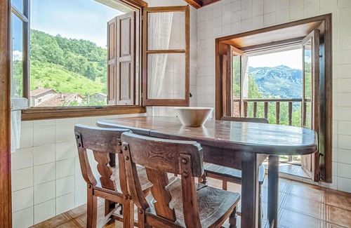 In the western corner of Cantabria, this fantastically located vacation home welcomes you. The tasteful interior and the pretty wooden elements make a bright, warm impression. In the rustic atmosphere, families or friendly couples will find an atmospheric setting for exciting vacations. In the morning, enjoy a freshly brewed coffee at the dining table while you get inspired for the upcoming activities while looking at the picturesque landscape.