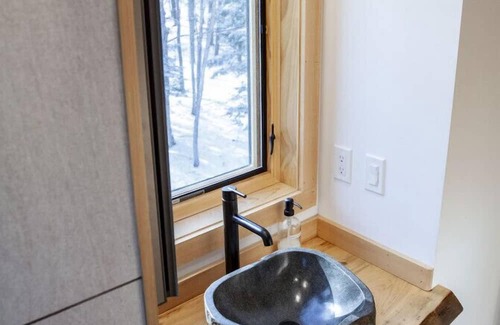 Ascent House, a unique retreat meticulously crafted for resting and recharging after exploring in our beautiful Adirondack Wilderness. Flooded with natural light, every room offers calming frames of nature. Clean, organized, sharp lines complement a design stripped to its essential. Watch the sun peak through the forest and rise over the mountains through expansive windows. Ascend the levels of the house, each revealing more of landscape. We hope you love it here.