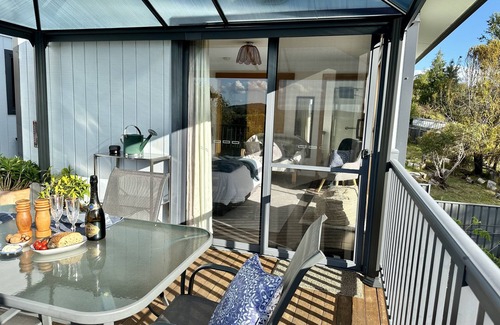 A tranquil separate bungalow high up on our deck, backing onto bush with water views towards Medeas Cove in St. Helens - the gateway to the Bay of Fires. Perfect for a 1 or 2-night-stay with bedroom, ensuite & breakfast kitchenette. Share our deck with the cheeky green parrots or watch the grazing wallabies over the back fence. Up the hill from the town’s shops, 2 minutes to the closet swimming beach on Georges Bay, 10 minutes to the world renowned MBT and 15 to Binalong Bay - the Bay of Fires. As hosts we’re on site available for any needs.