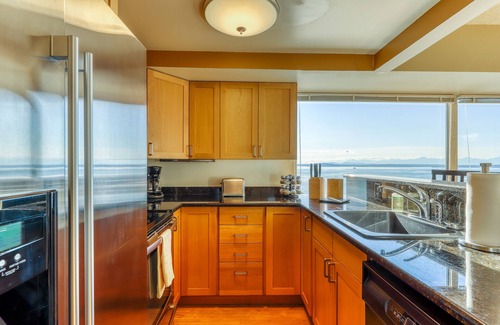 Wake up with a view of the water from the master suite with a king bed and en suite bathroom. You can almost smell the coffee and fresh flowers wafting up from Pike Place Market below. After you spend your day on the waterfront, relax with a glass of wine and the sunset over the Olympic mountains. Allow the glow of the city to lull you into a peaceful night's sleep. In the morning, awaken to coffee brewing in the kitchen and a new day of countless possibilities. This charming vacation rental boasts a Perfect Walk Score of 100! And note that your dogs are also welcome to join you here! If you decide to book this marvelous retreat, you'll be granted access to the shared hot tub and indoor pool available!