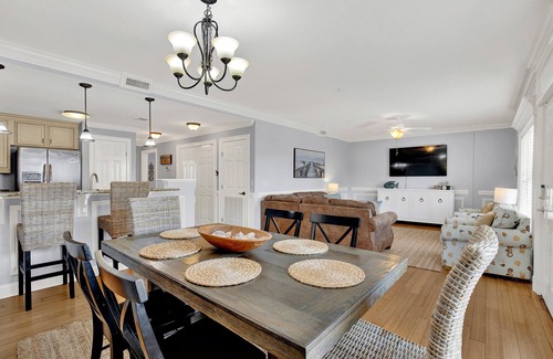 Adjacent to the living room is the dining space. Seat up to six people at this table, which is also the maximum occupancy for this rental. For a casual meal, the breakfast bar with barstools is just behind the dining table. Vacation rentals Tybee Island GA make the property as versatile as possible to create a relaxing trip for you.