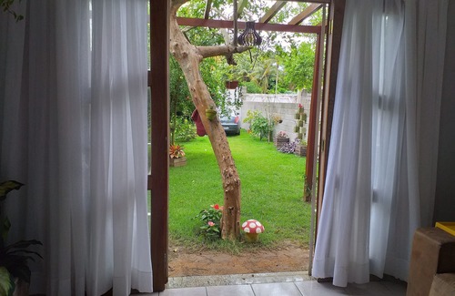 Enjoy the integration with nature, as the house has a cozy garden and faces the Santa Mônica beach, which is known for the quiet tide, with firm sand, ideal for children and the elderly and for sunset walks 🌤